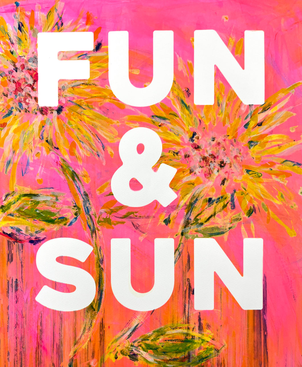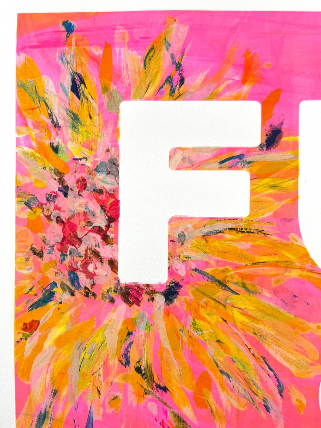 One of a kind, hand painted on a silk screen, then printed on 300GSM archival paper and signed at the bottom right hand side. I work out of a screen print studio in East London called The Print Club.