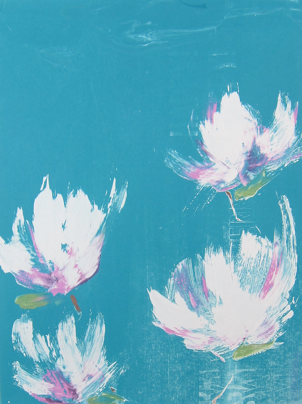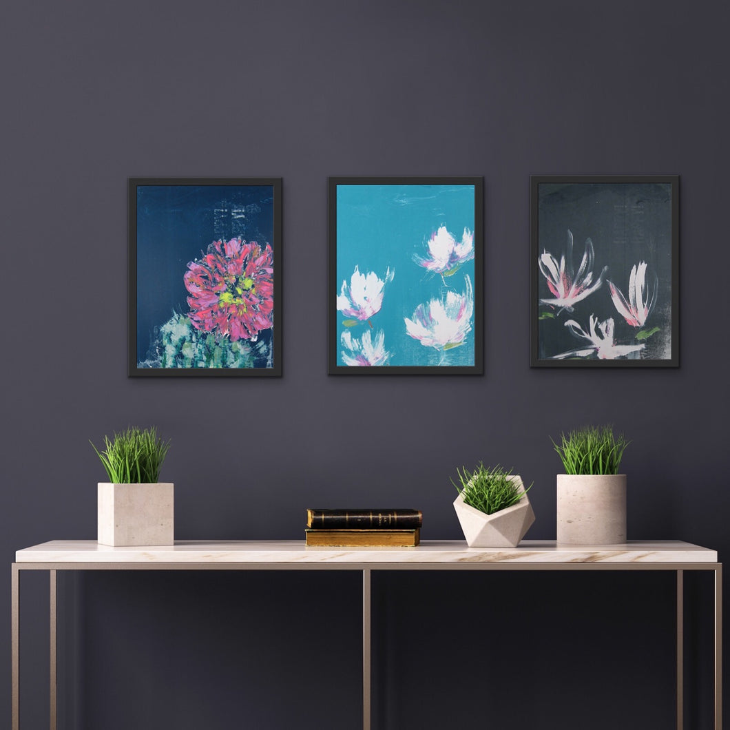 I have been dreaming of doing a floral series! Using a silkscreen technique, each of these mono prints resembles a painting. What I love about it are the random oops and mistakes that can happen along the way that contribute to the perfect imperfections of each.