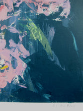 One of a kind, hand painted (two layers!) on a silk screen, then printed on Fabriano 300GSM cold press paper.    I work out of a screen print studio in East London called The Print Club.