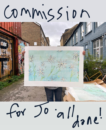 A series of original works on paper, inspired by my love of flowers. These are created by a process of me painting directly onto a silkscreen, then pulling a squeegee so that the paint goes through the mesh to create the mono print. Feel free to email me with inquiries and commissions of a range of sizes and flowers in your choice of colors at ME@MEandBlue.com ... You can also find more of my Super Bloom prints at Print Club London.
