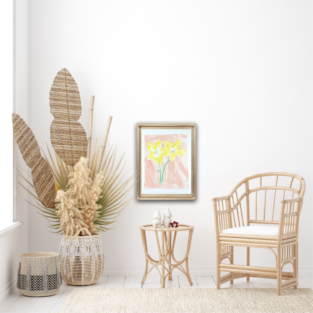 My love of daffodils runs deep. They were the first flower that I ever grew as an adult and took me by delightful surprise when I grew my first one many years ago. They are also the blooms that I started off doing with my signature monoprints.