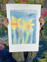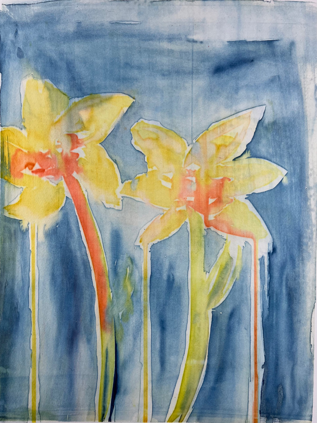 My favourite - the daffodil. The first bloom that I ever grew and now, the first in a fresh series of watercolour monoprint works. I paint a watercolour onto a silkscreen, then transfer the image to the paper below using a squeegee. I call these Dream Florals because the watercolour effect creates a dreamlike vibe. A bit fuzzy, a bit faded, and beautiful in all of their imperfections.